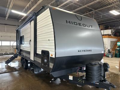 With any Hideout travel trailer by Keystone, you will find functional features and comfort at every turn! Each one is built with Tru-fit™ slide construction and a walkable roof for added durability. There is One piece enclosed underbelly, along with an outside shower, heavy-duty stabilizer jacks, and Furrion® backup camera prep. You'll love the pressed countertops inside, plus, LED lighting, blackout night shades, and many more comforts. Additional features include a tankless water heater, a black tank flush, a power tongue jack, and an XL entry assist handle to name just a few!