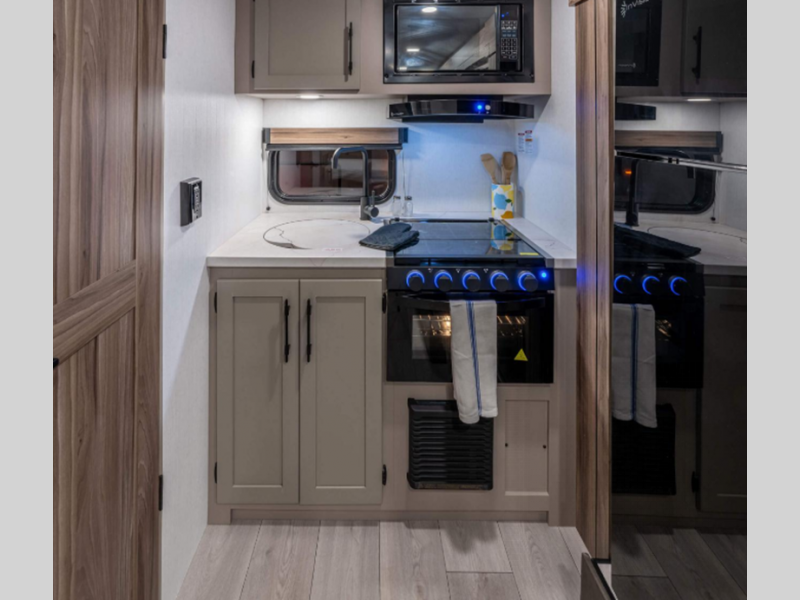 Sleeps 3 Slides 1 Length 22 ft 1 in Ext Width 7 ft 6 in Ext Height 10 ft 5 in Int Height 6 ft 6 in Hitch Weight 560 lbs GVWR 4800 lbs Dry Weight 3980 lbs Cargo Capacity 820 lbs Fresh Water Capacity 36 gals Grey Water Capacity 32 gals Black Water Capacity 32 gals Tire Size 15" Available Beds RV Queen Refrigerator Type 12V Refrigerator Size 8 cu ft Cooktop Burners 3 Shower Size 24" X 36" Number of Awnings 1 Axle Weight 3420 lbs LP Tank Capacity 20 lbs Water Heater Type Tankless AC BTU 13500 btu Awning Info 11' Power with LED Light Strip Axle Count 1 Number of LP Tanks 1 Shower Type Standard Similar Floorplans