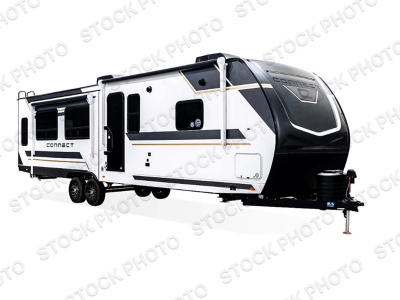 You can use this Connect travel trailer whenever you want to get away! You will remain comfortable each night sleeping in the master suite with a spacious full rear bath where you can freshen up each day. There is also a wardrobe with washer and dryer prep, plenty of counter space, and a wardrobe with outside storage for hiking gear. The front kitchen has ample countertop space for lots of extra space to chop veggies and prep meals, and the large slide in the main living area holds the booth dinette and hide-a-bed sofa. These pieces of furniture rest across from the 34" fireplace for a cozy evening with a cup of coffee, and there is a hidden pantry where you can grab snacks.