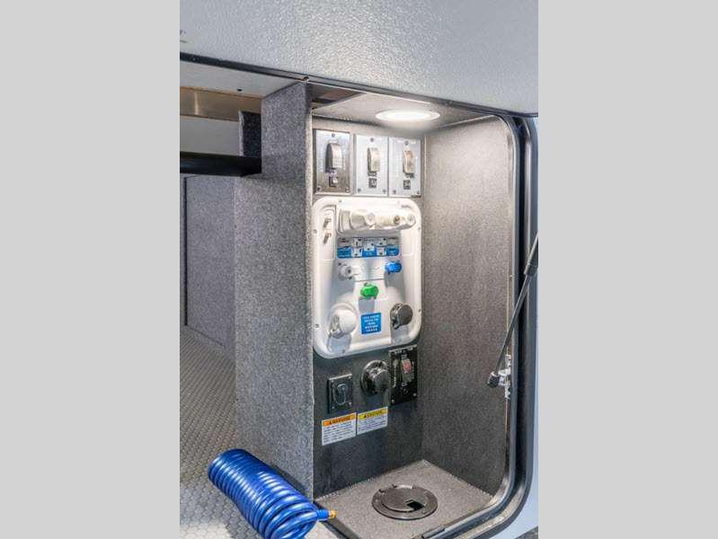 - Deluxe Heated Water Convenience Center (includes black tank flush, power fresh tank water fill, winterizing system, outside shower & dry camping water siphon system)