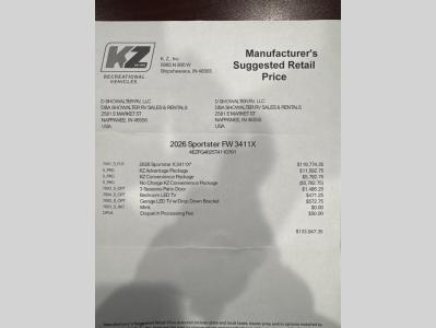 KZ Sportster X 3411X Toy Hauler Fifth Wheel For Sale
