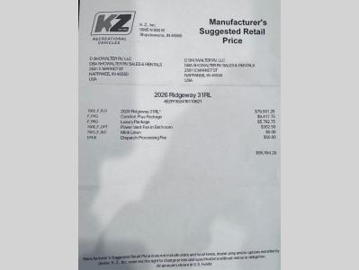 Showalter RV is not responsible for any misprints, typos, or errors found in our website pages. Any price listed excludes sales tax, registration tags, and delivery fees. Manufacturer pictures, specifications, and features may be used in place of actual units on our lot. Please contact us @574-773-2670 for availability as our inventory changes rapidly. All calculated payments are an estimate only and do not constitute a commitment that financing or a specific interest rate or term is available.
